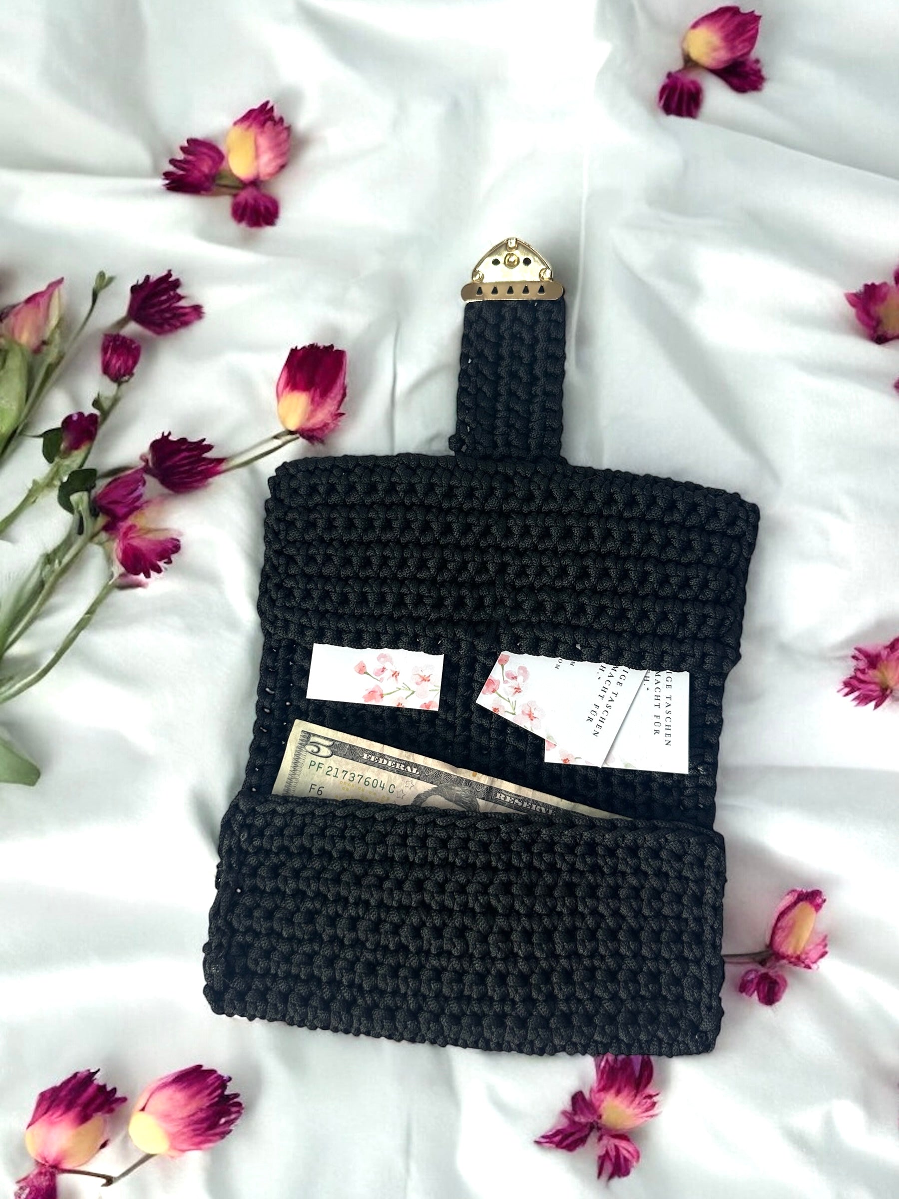 Dieses moderne Portemonnaie aus robuster Polyesterschnur wurde in liebevoller Handarbeit gefertigt. Es ist nicht nur langlebig und formstabil, sondern überzeugt auch durch sein zeitloses, gehäkeltes Design.